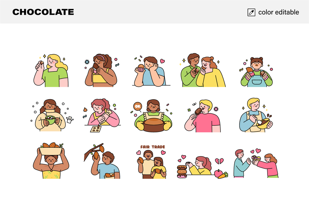 This is an illustration pack of people who make chocolate.